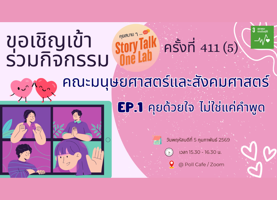 กิจกรรม “คุยสบายๆ… Story Talk One Lab“ ครั้งที่ 411 (5) เดือนกุมภาพันธ์นี้พบกับ คณะมนุษยศาสตร์และสังคมศาสตร์ EP.1 “คุยด้วยใจ ไม่ใช่แค่คำพูด”